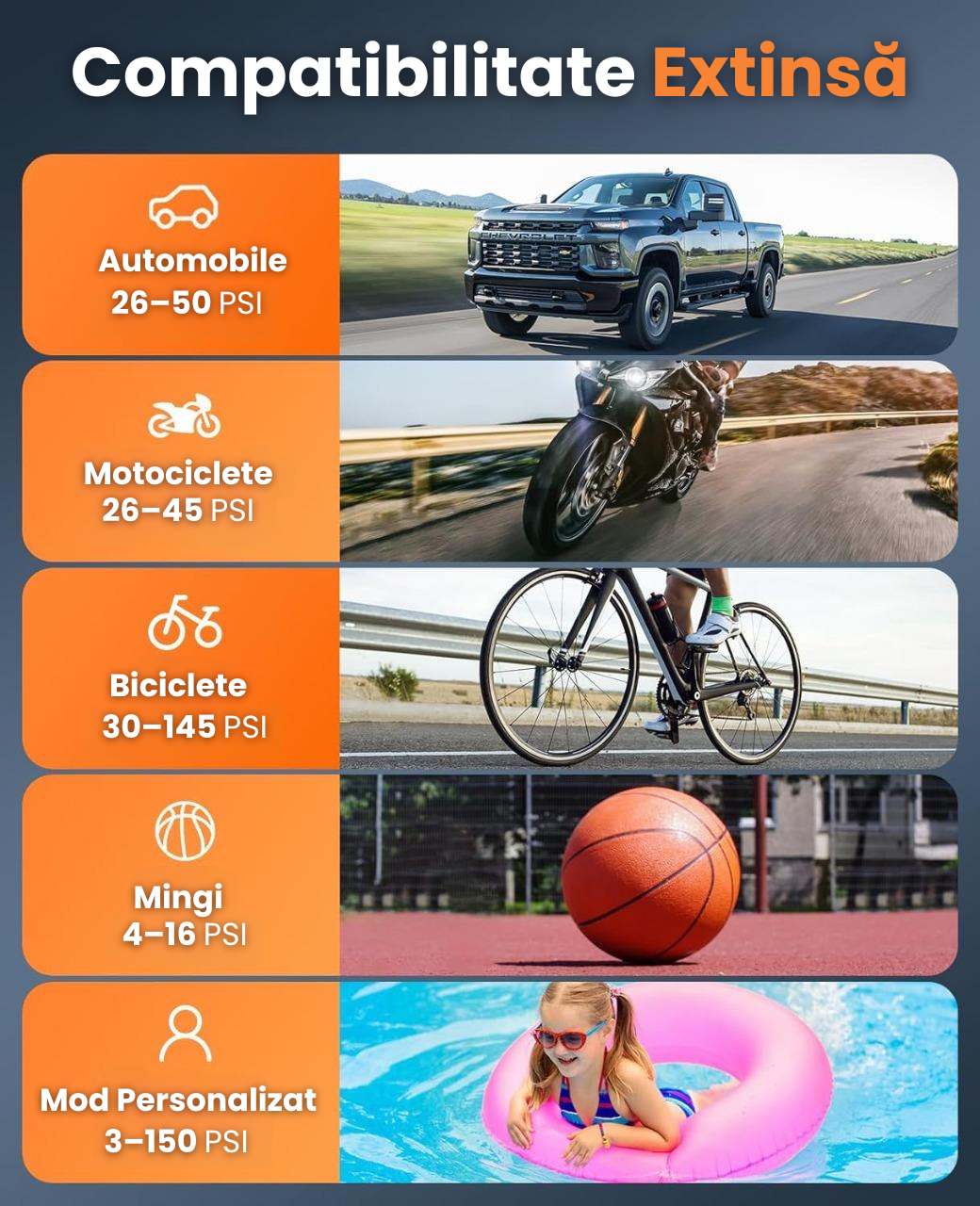 · Timp de umflare sub 35 secunde intre 28–35 PSI.