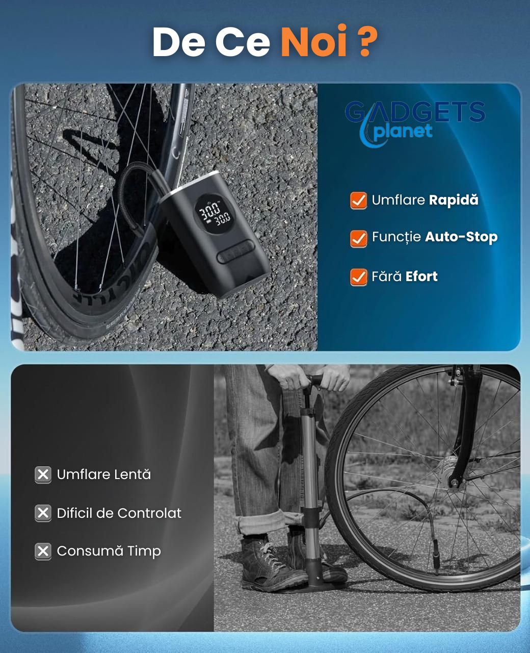 · Include adaptor universal pentru automobile, motociclete, biciclete si mingi.